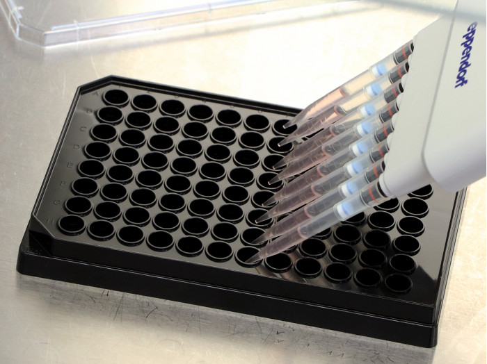 用于高通量細胞分析實驗的黑色圓形孔、平底、透明的96孔培養板