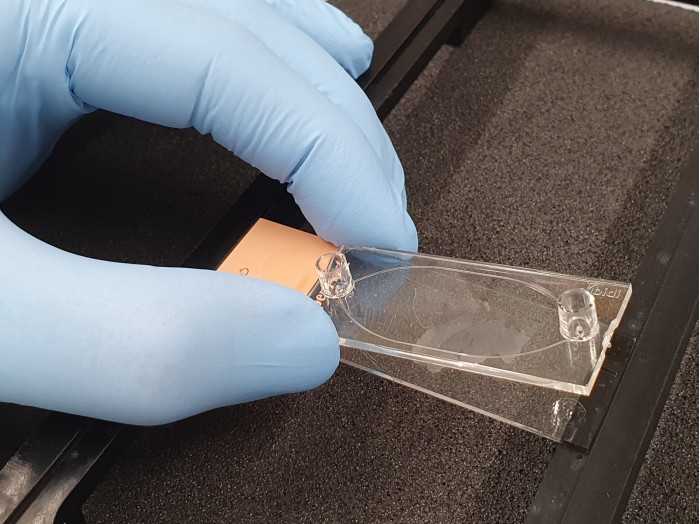 Sticky-Slide Tissue組織切片通道載玻片提供了一個(gè)簡(jiǎn)單、便捷的工作流程,可在載玻片安裝的組織切片上創(chuàng)建一個(gè)節(jié)省空間的通道。在對(duì)組織進(jìn)行脫石蠟處理和再水化后,取下襯底并將粘性載玻片放在顯微載玻片上,即可為組織切片創(chuàng)建一個(gè)方便的染色室。